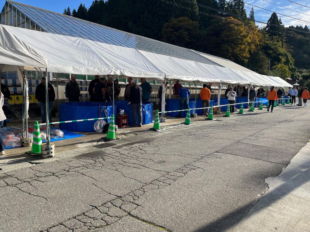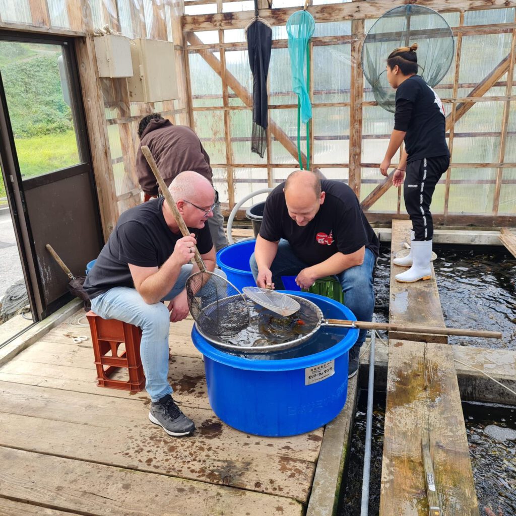 Na deze veiling wat overigens een hele belevenis is om mee te maken, zijn we doorgereden naar verschillende andere kwekers. Leuk om te delen is dat de kweker Takatatsu zijn bassins verwarmd met petroleum, in het filmpje hieronder is hij aan het bijvullen.