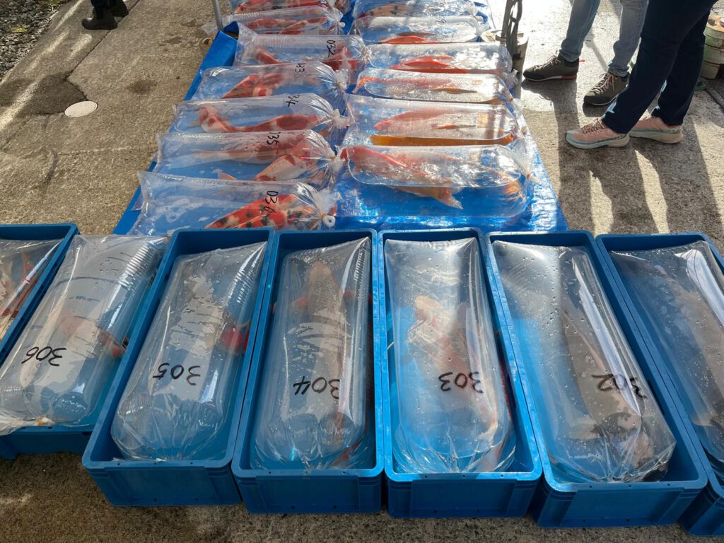 Eenmaal goed gekeken in de bakken hebben we besloten om de duizenden (ja je leest het goed) kleine tosai vissen te selecteren en uiteindelijk hebben we de hand gegeven en een 80-tal Tosai “Hand Picked” gekocht.