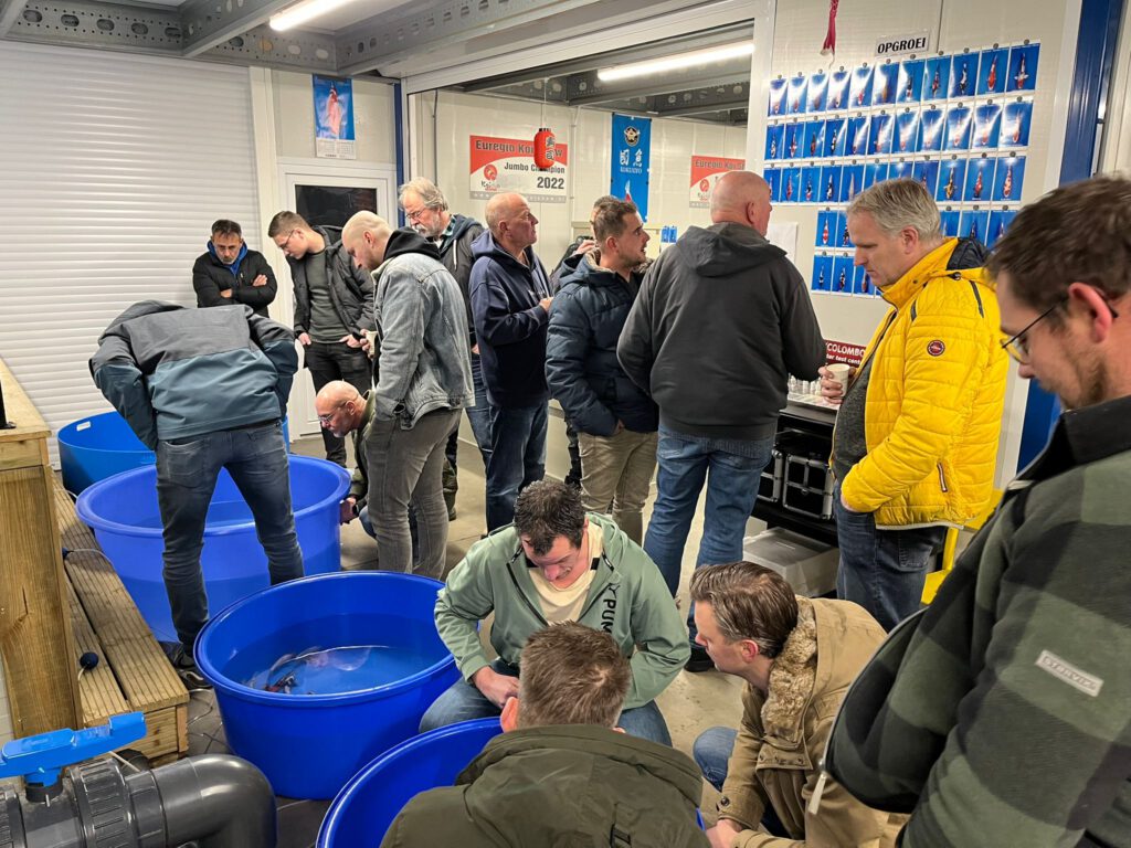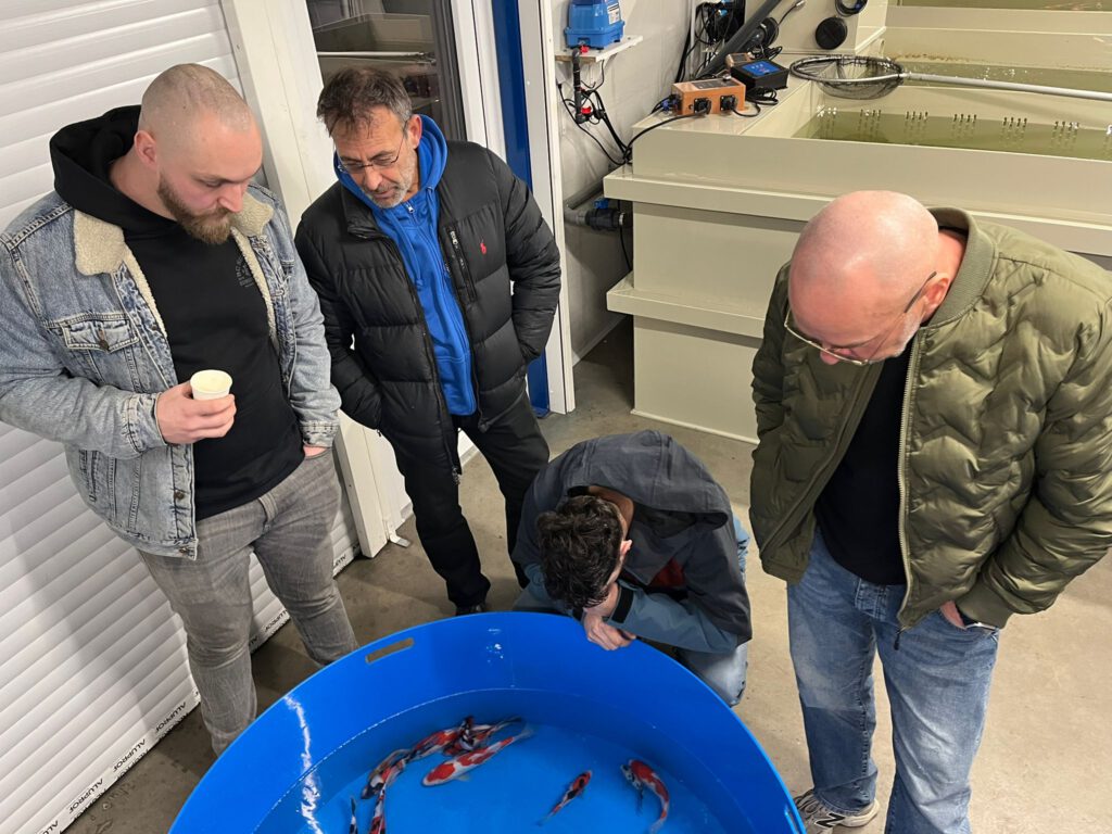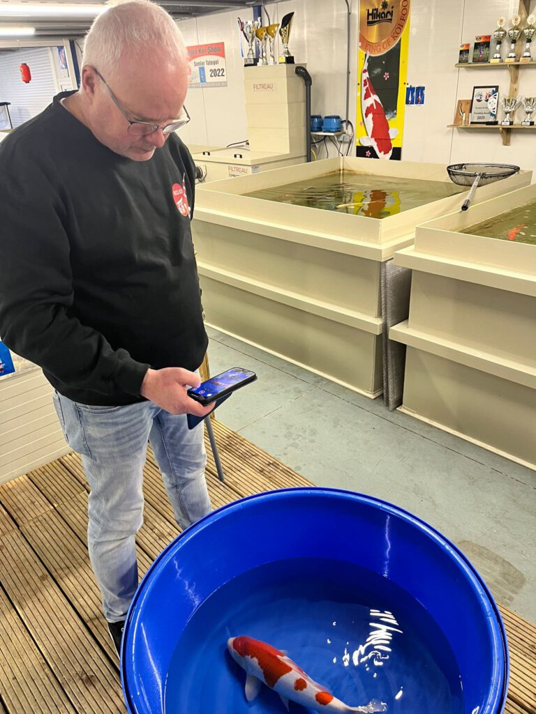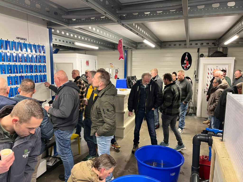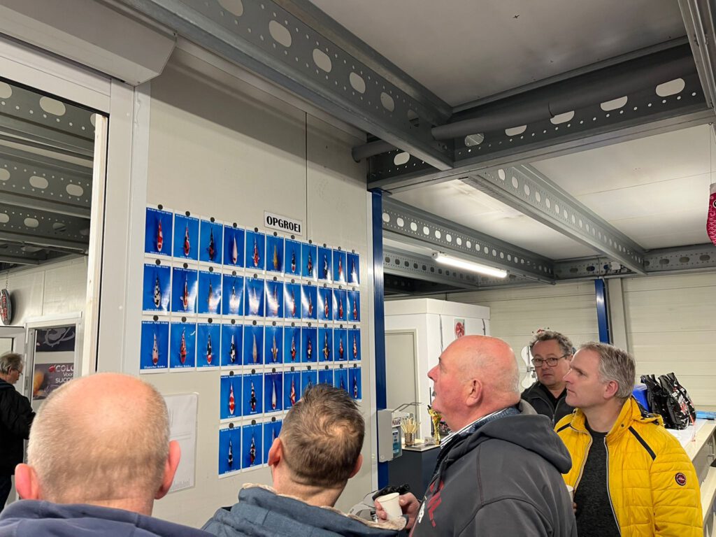 Zaterdag 3 januari werden de gekozen koi nog even goed op de foto gezet en de naam van de klant erbij vermeld. De komende maanden worden er gezellige avonden georganiseerd waarin de resultaten worden bekeken (groei etc.) en bijgehouden. Medio september kan de gekozen opgroei koi meegenomen worden naar de vijver.