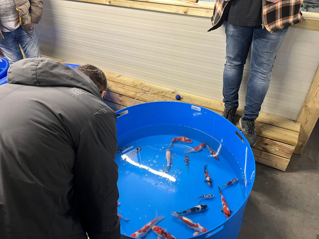 Er waren 4 verschillende prijsklassen zodat iedereen een koi kon uitzoeken naar eigen budget.