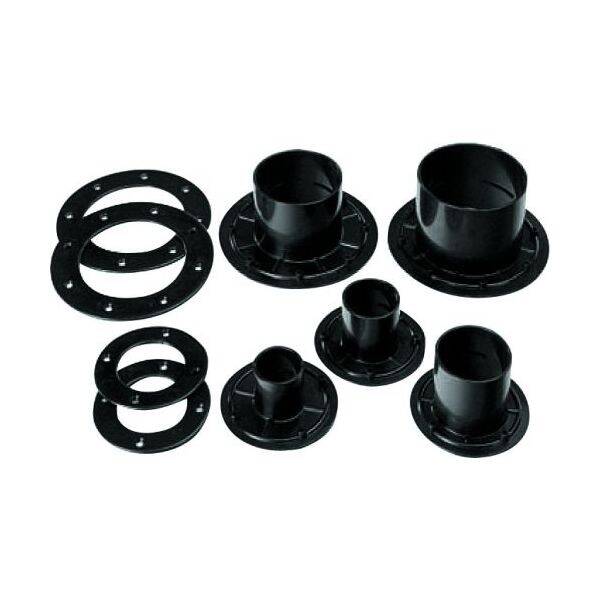 Rechte koppeling met een lijmverbinding voor het doorvoeren of aansluiten van een PVC drukbuis. Incl. flens en schroeven.